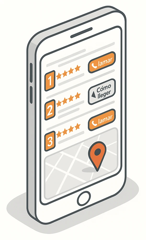 Cuando alguien busca cerca de tu negocio, decide en segundos: pulsa “Llamar” o “Cómo llegar”. Si no estás en el Top 3 del mapa, elige a otro.